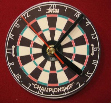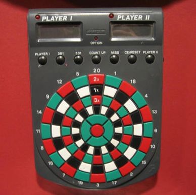 You put the horseshoes on your darts and play just as you would outdoors shooting for the stakes.
