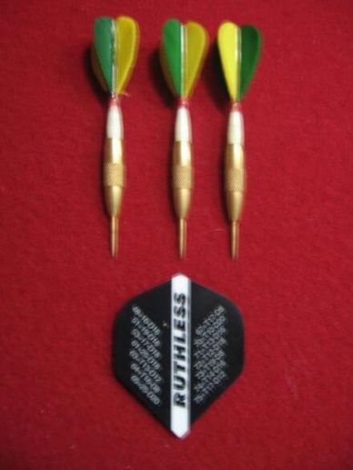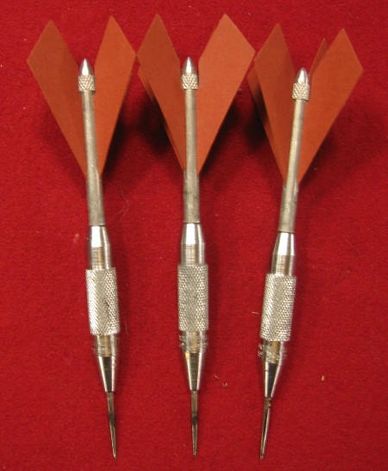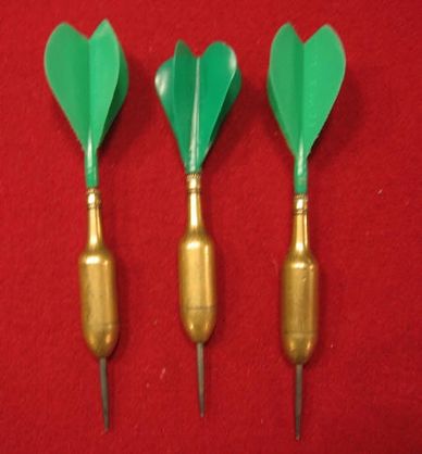 Another classic set of torpedos. If you never threw brass darts you missed out on some great fun and dart history. They are still some of the best darts to throw except they are unforgiving when grouped closely.