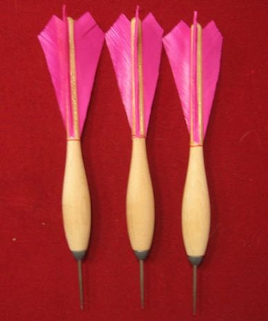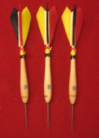 These darts are for play on the Belgium Dart board the are made of cherry and are needle sharp but very light.